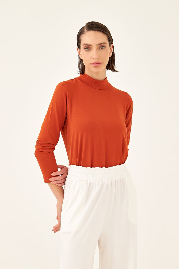 BLUSA CACHARREL BASIC LINE GOLA ALTA Laranja Tijolo