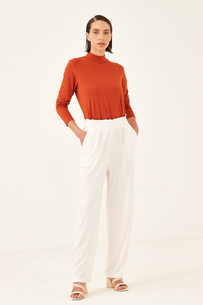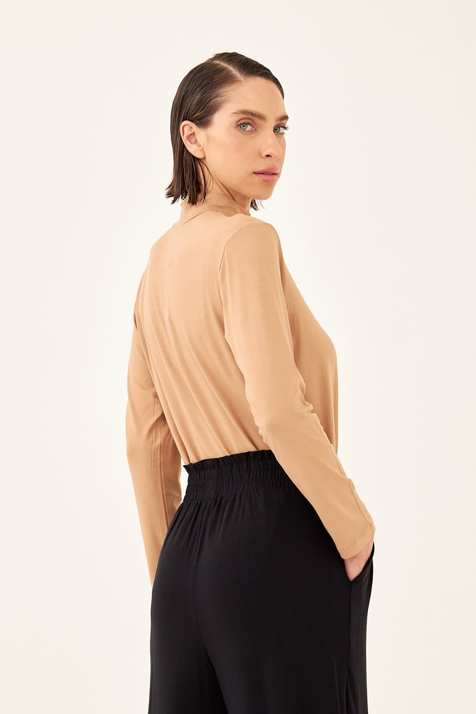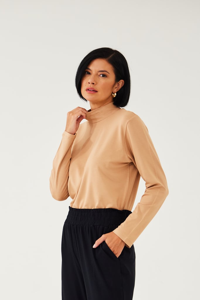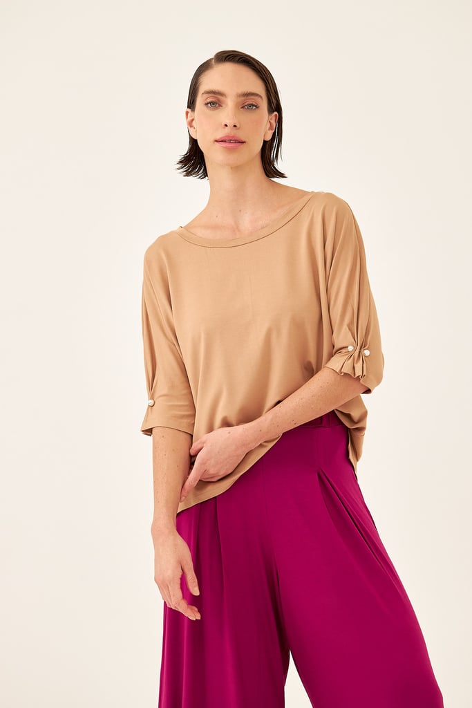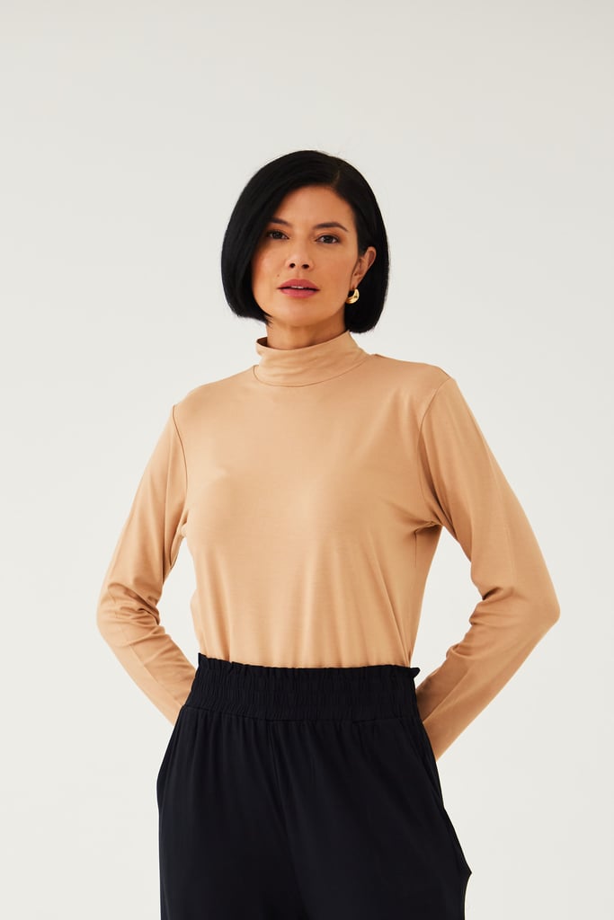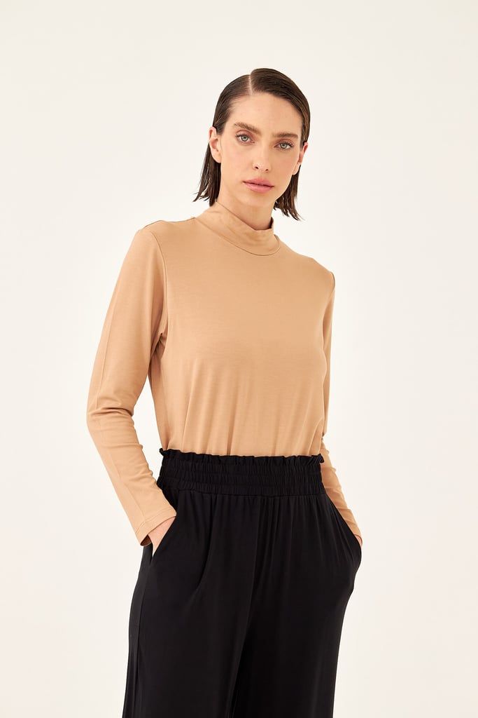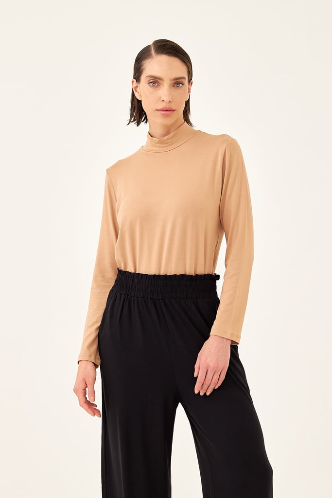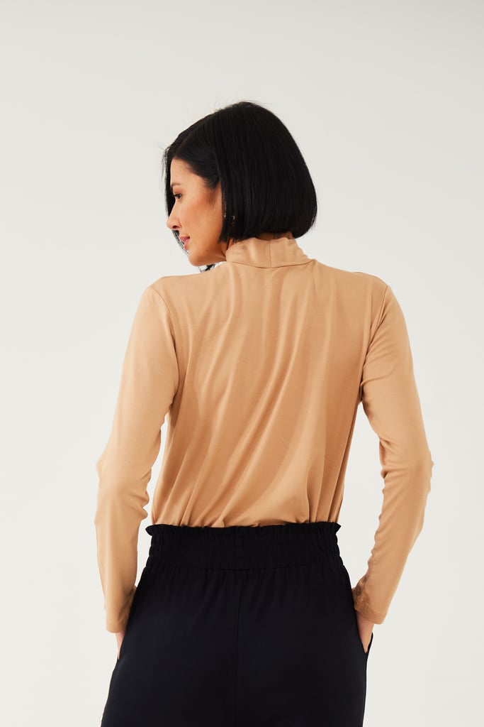 BLUSA CACHARREL BASIC LINE GOLA ALTA Bege Trigo